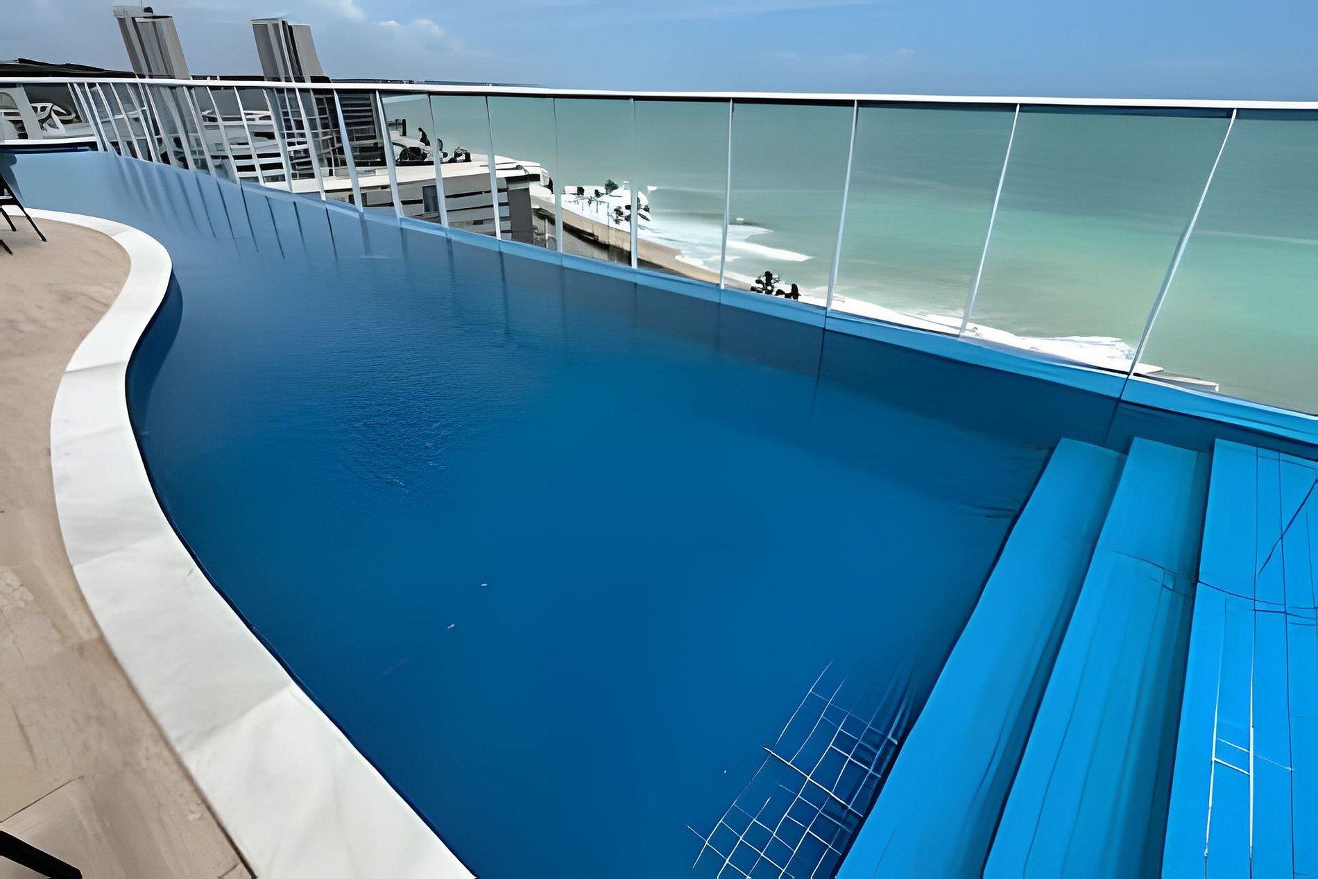 A piscina com borda INFINITA no rooftop, se mistura aos tons azuis do mar e do céu de Maceió, ao ar livre com terraço e a brisa fresca, garante uma vista espetacular do mar e única de Maceió. Academia completa e WiFi gratuito. Disponível na recepção, mediante reserva, aluguel de churrasqueira